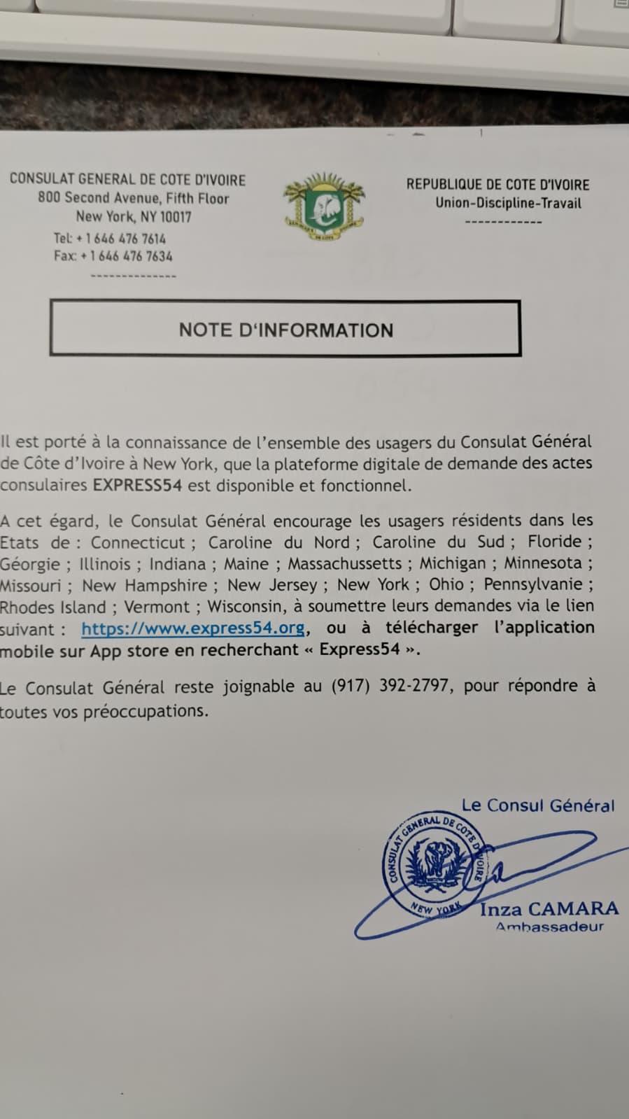 📢 Nouvelle procédure de demande de visa en ligne - Consultez express54.org pour plus d'informations⚠️ Horaires d'ouverture modifiés: Lundi-Vendredi 9h-17h - Merci de votre compréhension🎉 Événement culturel ivoirien le 15 février 2025 - Inscription ouverte📄 Nouveau système de rendez-vous en ligne disponible pour tous les services consulaires🔔 Formation consulaire gratuite pour les membres de la diaspora - Places limitées📢 Nouvelle procédure de demande de visa en ligne - Consultez express54.org pour plus d'informations⚠️ Horaires d'ouverture modifiés: Lundi-Vendredi 9h-17h - Merci de votre compréhension🎉 Événement culturel ivoirien le 15 février 2025 - Inscription ouverte📄 Nouveau système de rendez-vous en ligne disponible pour tous les services consulaires🔔 Formation consulaire gratuite pour les membres de la diaspora - Places limitées